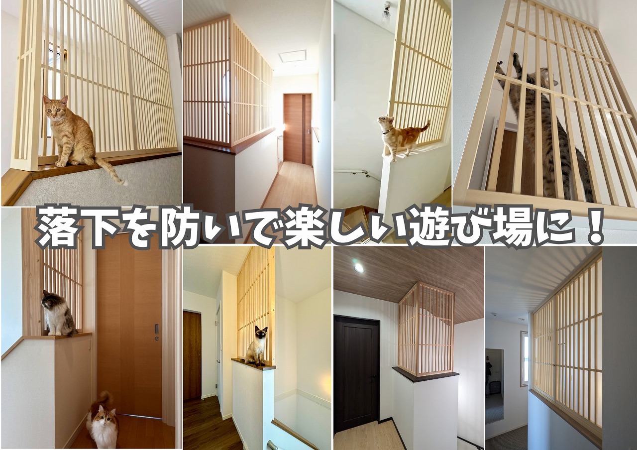 にゃん・DEフェンスを設置する事で、ペットの安全を守る事だけでなく、ベイヒバ材が持つリラックス効果により、人間も過ごしやすくなります。